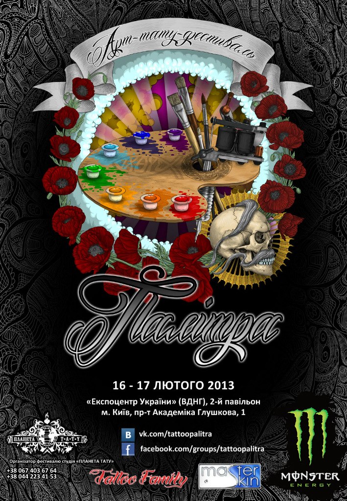 16-17 лютого 2013 року в Києві в НК «Експоцентр України» (пр. Академіка Глушкова 1, павільйон № 2) очікується грандіозна подія арт-тату-фестиваль «Палітра».