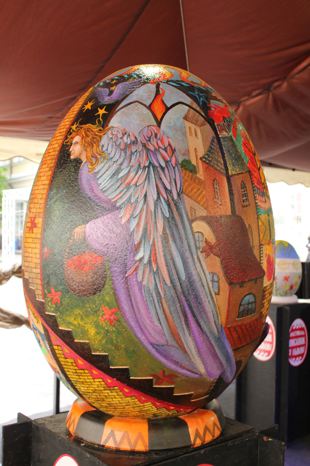 Нагадаємо, що в рамках Фестивалю Писанок було відкрито «Галерею мистецьких писанок», її експозицію складають понад 50 мистецьких півметрових та метрових писанок. Свій внесок у створення цієї виставки зробили відомі художники, серед яких Олександр та Іванка Войтович, Наталія Балух, митці та дизайнери Львова, а також юні таланти з творчих студій та організацій. Ці роботи також виставлено на благодійний аукціон, де вже продано 4 з них.