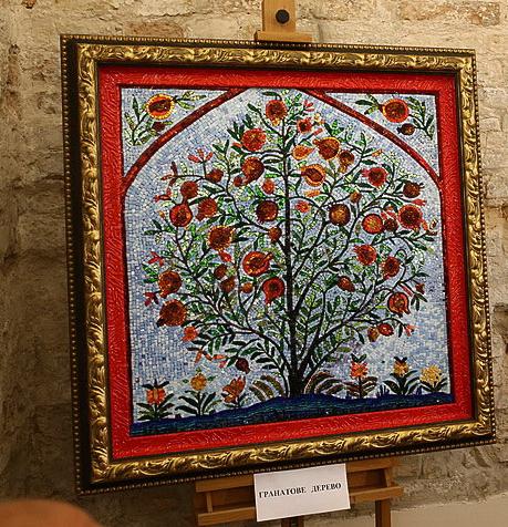 Мозаїчні панно з бурштину "Дерево життя" та "Орнаменти Шекі" створили сучасні українські митці за мотивами орнаментів Ханського палацу, що зберігся у древньому місті Шекі та є кандидатом на внесення до списку Всесвітньої спадщини ЮНЕСКО.