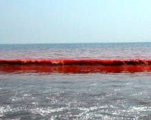 Сьогодні узбережжя Азовського моря в Бердянську обагрилася в яскраво червону лінію, яка простяглась на відстані 70 -100 метрів від берега.