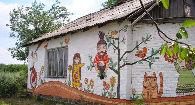 Стіни хат у селі розмалювали в українському стилі, нові будівлі створюють з екологічно дружніх матеріалів – дерева, сіна, глини.