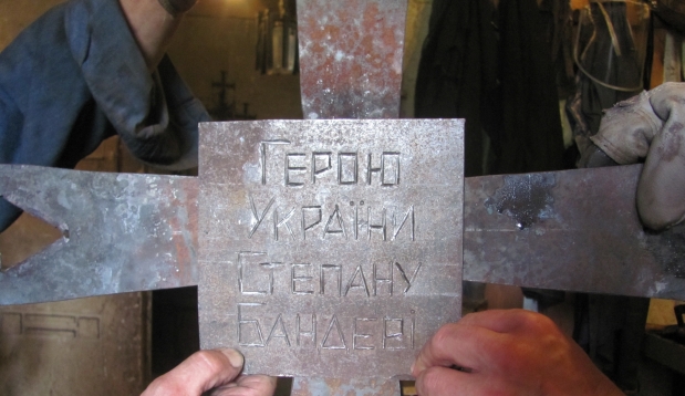 У Львові сьогодні викували унікальний майже десятикілограмовий хрест із написом «Героєві України Степану Бандері».
