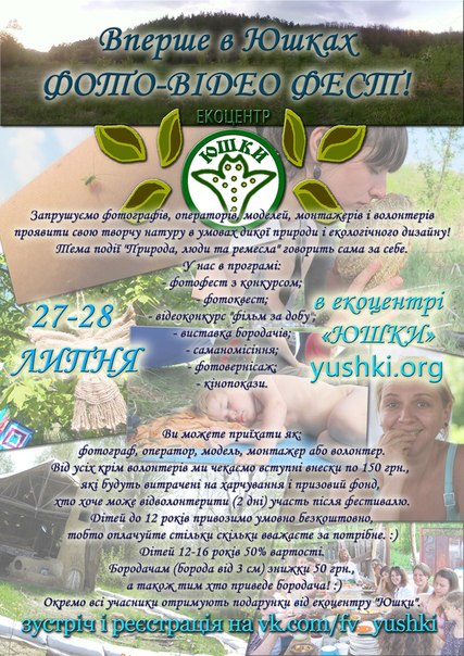 Запрушуємо фотографів, операторів, моделей, монтажерів і волонтерів проявити свою творчу натуру в умовах дикої природи і екологічного дизайну!