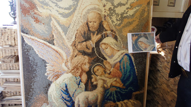 Ікона «Спас Нерукотворний» (1,4х1,4 м) виготовлена з 26 569 модулів 15-ти порід дерева, панно «Святе таїнство» (1,62х1,92 м) містить 41 625 модулів з понад 30-ти порід дерева.