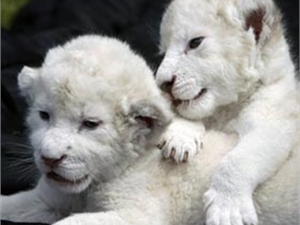 Білі левенята, яким від народження всього два тижні, вже відкрили очі і намагаються кусатися, повідомляють місцеві ЗМІ.
