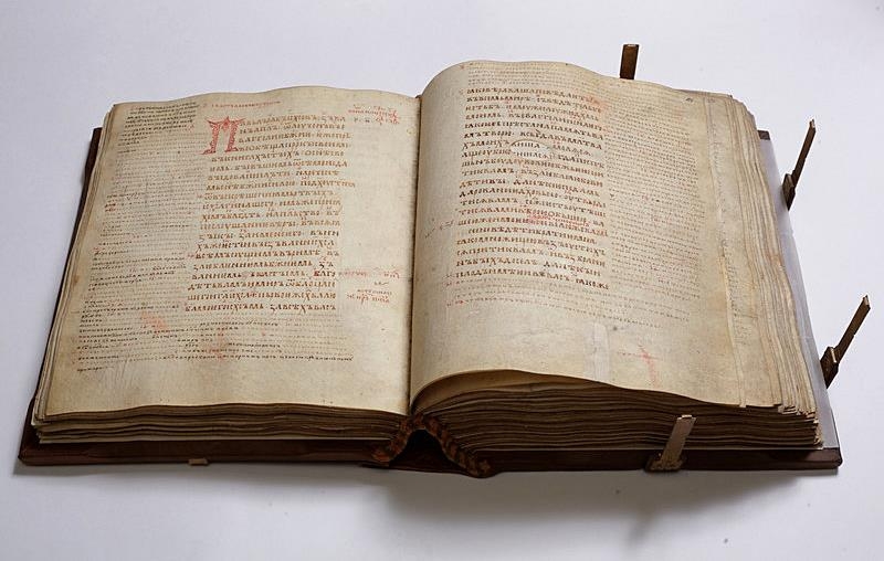 Сакральне мистецтво представлено на виставці шедеврами різних епох, найдавніші з яких – хорести-енколпіони, яким уже майже 1000 років, і лише трішки молодший за них рукопис ХІІ століття, одна з найдавніших писемних пам’яток, що збереглися на території України до наших днів – рукопис Апостола, відомий під назвою Кристинопільського (колекція Львівського історичного музею, на фото). Окрасою експозиції є рідкісні авторські ікони Самбірської школи доби Ренесансу (колекція музею «Дрогобиччина»), серед яких – роботи Василя Глібкевича з Церкви Святого Юра в Дрогобичі, яку внесено до списку Всесвітньої спадщини ЮНЕСКО, а також роботи художника Федуска із Самбора – ілюстратора Пересопницького Євангелія, на якому присягають українські президенти.