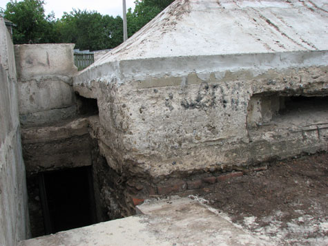 Дот зразка 1943 року нетиповою конструкції - з бійницями на всі чотири сторони - був засипаний землею та сміттям, зверху стирчали лише фрагменти бетонної даху.