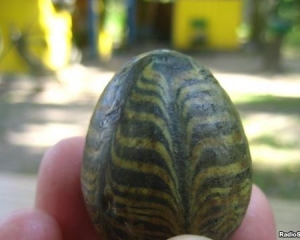 "Це початок 12 століття, Київська Русь. На Волині це перша ціла, настільки старовинна писанка. Раніше в курганах знаходили шматочки. А це таке цілесеньке… Ціна йому неймовірна. І ще калатає – так, ніби вчора зробили… Глибоко етнографічна річ. По ній хвилі – як символ води, і символ родючості – колоски. Закладали в це сакральний смисл, безперечно. Вони туди камінець клали, потім заліплювали глиною, і виходила така колотушка. Вважалося, що мало магічну дію", - зазначив керівник експедиції, заступник директора Інституту археології НАН України Денис Козак.