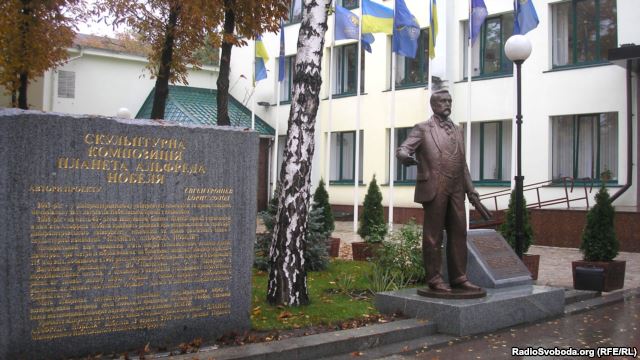У Дніпропетровську у середу відкрили перший в Україні, унікальний пам’ятник Альфредові Нобелю. Скульптура встановлена на території університету економіки та права, який носить його ім’я.