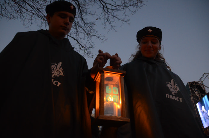 В суботу, 21 грудня, пластуни передали вогонь громаді Києва на Володимирській гірці, у музеї «Меморіал пам’яті голодоморів в Україні» та на Євромайдані.