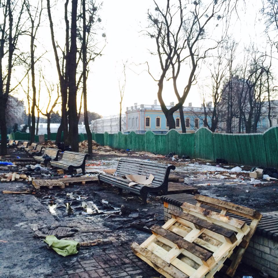 Активісти Євромайдану все-таки змогли прибрали територію антимайдану в Маріїнському парку після прихильників Партії регіонів. Про це у своєму Facebook написав Андрій Парубій.