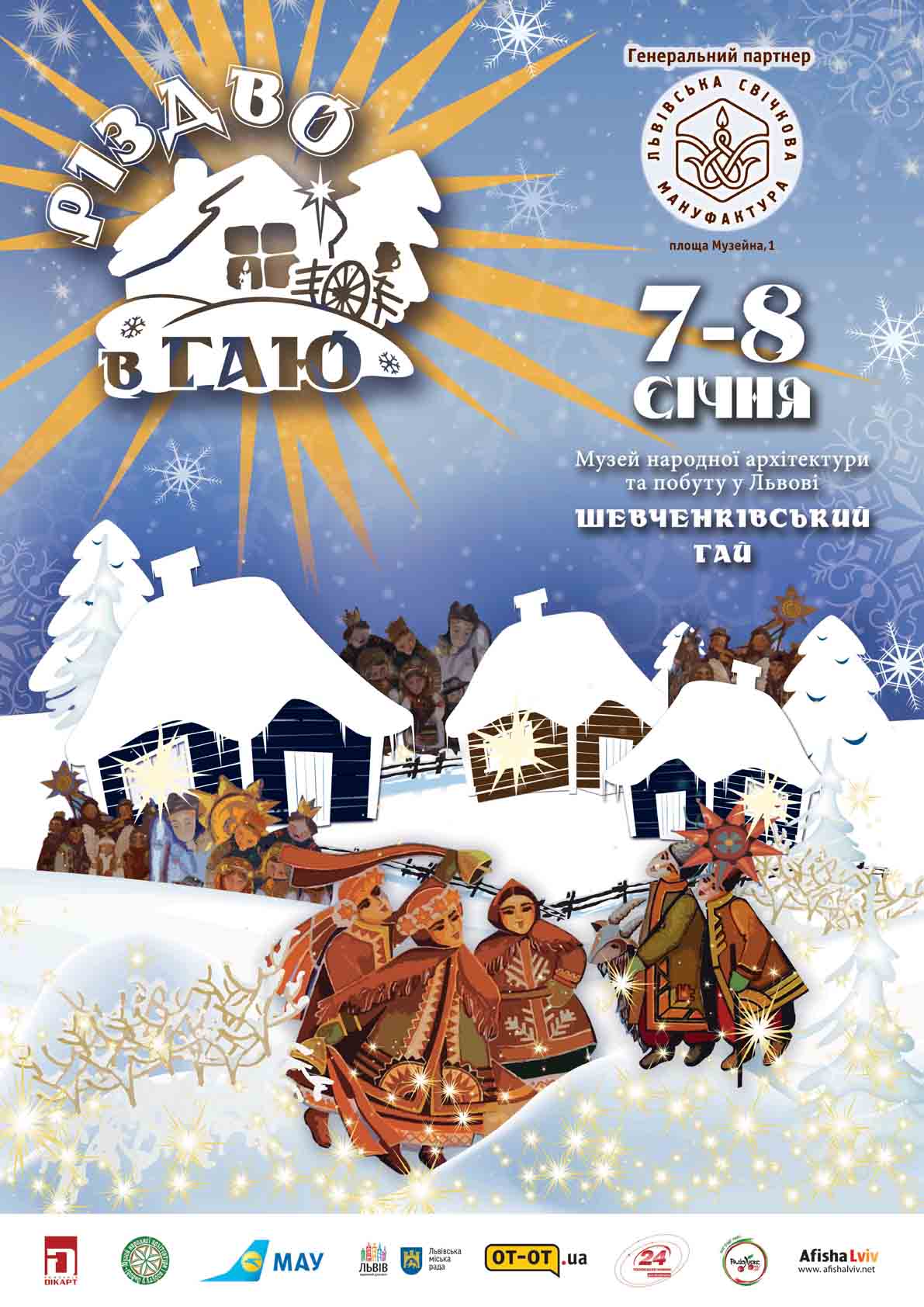 7-8 січня у Музеї народної архітектури та побуту «Шевченківський гай» організують свято «Різдво в Гаю» – місце зустрічі львівських родин, друзів та гостей міста. Вперше відкриють свої двері садиби гаю, де відбуватимуться майстер-класи із виготовлення ляльок - мотанок, плетіння дідухів, різдвяних павуків, читання різдвяних казок, гості спільно колядуватимуть від хати до хати, що створить особливу родинну атмосферу.