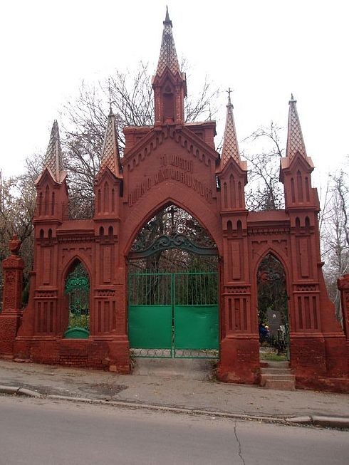 Закладено в грудні 1833 для поховання осіб православного, лютеранського і католицького віросповідань (на спеціальних відокремлених частинах). Відповідно кожна частина мала свої каплиці. В 1884 збудовано кам’яну церкву (архітектор В. Ніколаєв), яка нині діє. Ліворуч від дороги розташоване Старе, а праворуч – Нове (з 1880-х pp.) кладовище. Останнє огорожено кам’яною стіною, яка має входи- брами, стилізовані під церкву, костел і кірху.