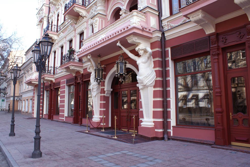 Згодом перейменований в готель « Червону ». Перший 4 - поверховий готель Одеси. До революції мав 100 номерів від 1 руб. 50 коп. до 15 рублів на добу. Вважалася однією з кращих готелів у місті. Тут зупинялися класик російської літератури Іван Бунін (він прожив тут цілий місяць в 1910 році), французький письменник Анрі Барбюс, американські літератори Теодор Драйзер і Джеймс Олдрідж. Фігура оголеною німфи, що махає з одного з балконів, провокує одеситів на каламбури, що, мовляв, «красна дівиця» так багатообіцяюче зазиває до «Червоної», що навіть змушує червоніти.