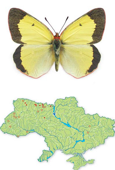 Розмах крил — 43-55 мм. Крила самця жовто-лимонні з широкою чорною облямівкою та яскраво-рожевою оторочкою. Самки мають більш бліде забарвлення крил.