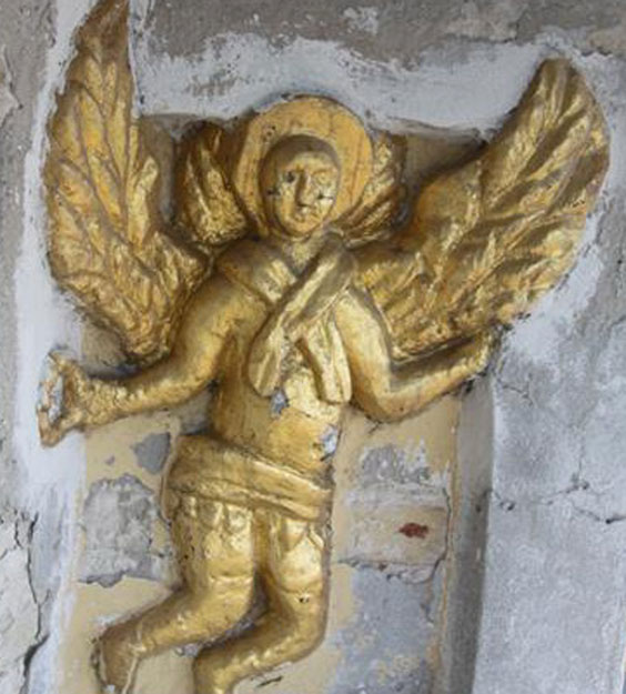 60-сантиметрова фігура ангела, покрита сухозлітним золотом, була розташована в стінній ніші під самим куполом, на східній стороні, зверненої убік Успенського собору.