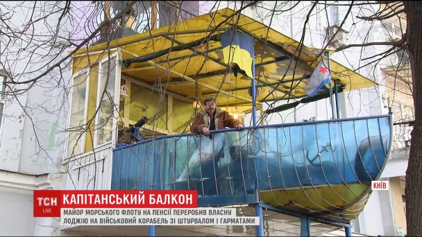 Киянин перетворив власну лоджію на військовий корабель із штурвалом, прапорами і гарматами.
