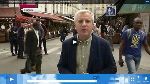 Поки російський журналіст розповідає своїм обдуреним телеглядачам про те як Європа "банкрутує" із за російських санкцій, по Паризькому ринку йде афрофранцуз в дуже крутий футболці з тризубом