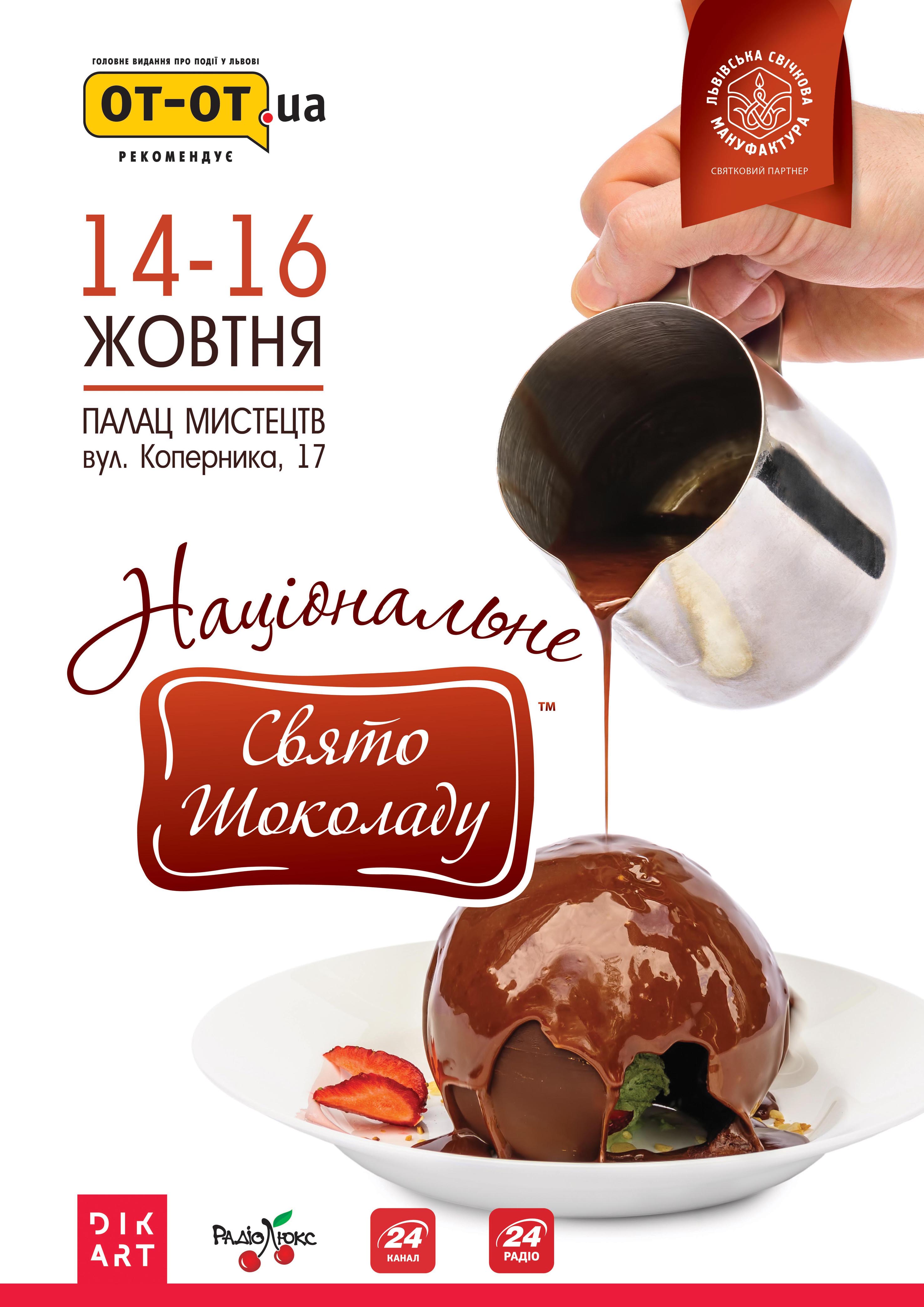 14 – 16 жовтня 2016 року у Львівському палаці мистецтв відбудеться найсолодше свято країни – Національне Свято Шоколаду. Протягом трьох днів Свята найкращі виробники шоколаду України представлять найсмачнішу свою продукцію. Крім того, кожен гість матиме змогу спробувати оригінальні шоколадні напої, придбати «шоколадні» сувеніри та взяти участь у різноманітних майстер-класах з приготування солодощів.