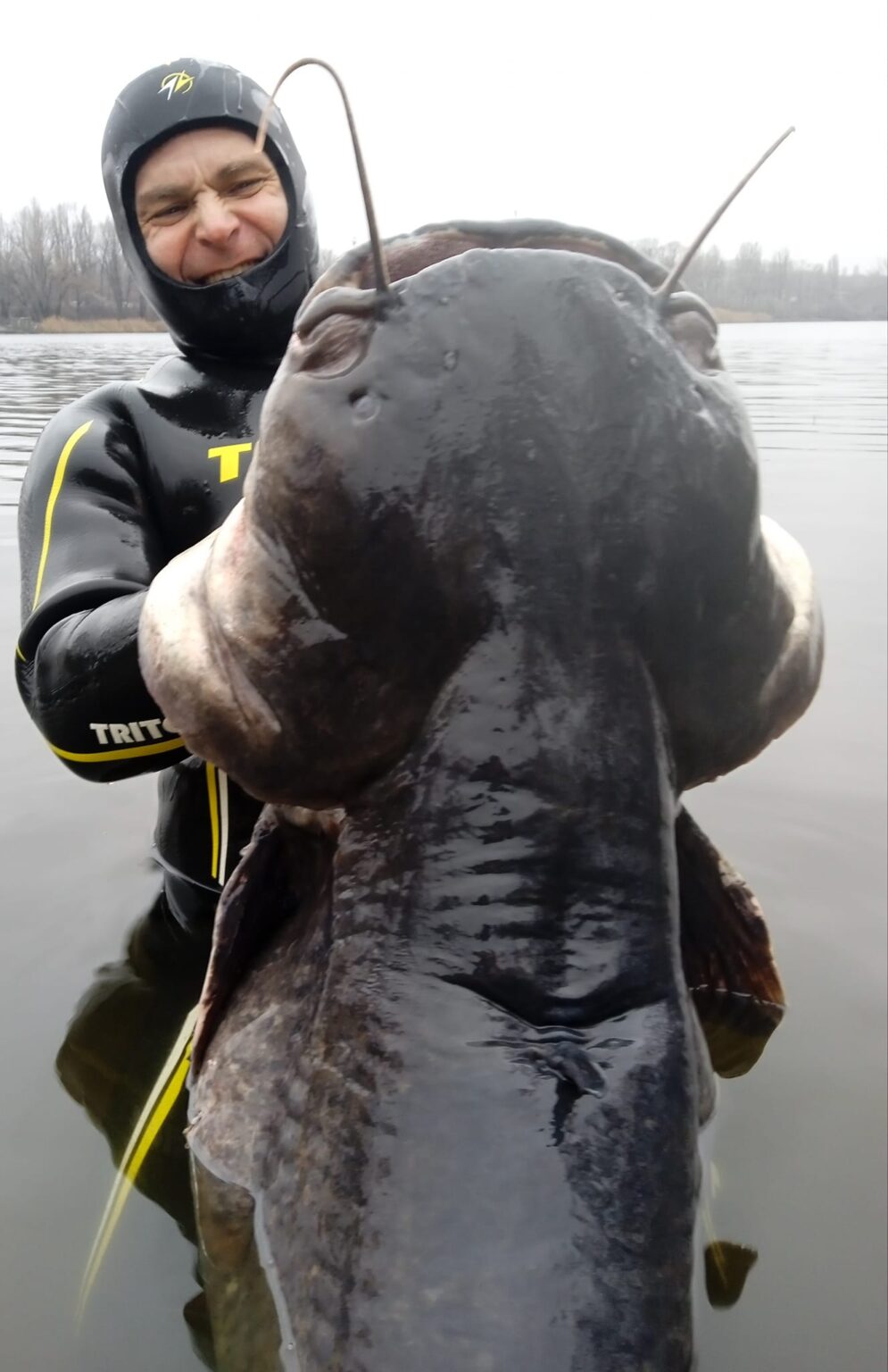У Дніпрі рибалка на глибині за допомогою гарпуна спіймав гігантського сома вагою близько 50 кілограм.