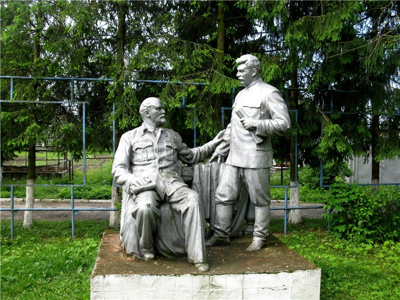 Ілліч розмовляє зі Сталіним, причому Ленін сидить на стільці, а вождь всіх народів йому щось доповідає з папірцем в руках. Пам'ятник колись стояв у Чернівцях, в міському парку. Але після розвінчання культу особи «вусатого горця» було заслано в село.